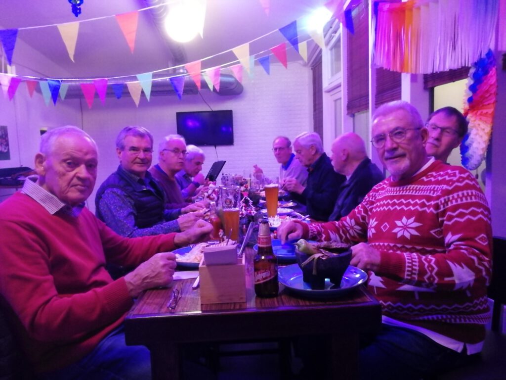 Weihnachtliche Geschichten und Lieder, sowie ein gutes Essen trugen zur feierlichen Stimmung bei. Abteilungs-undÜbungsleiter Herbert „Herle“ Kritter (re) und Hans „Cello“ Kellermann hatten große Freude