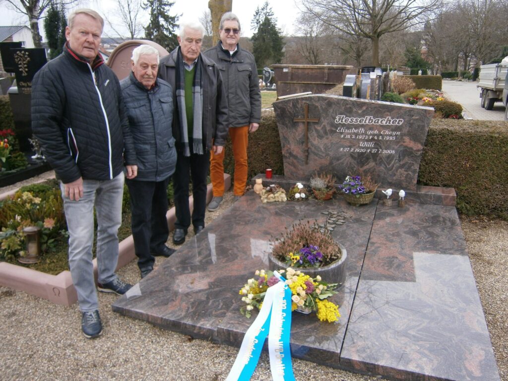 Ehrenvorstand Hartmut Glaser legte in Begleitung von ehemaligen Weggefährten ein Blumengebinde am Grabe von Willi Hesselbacher nieder.