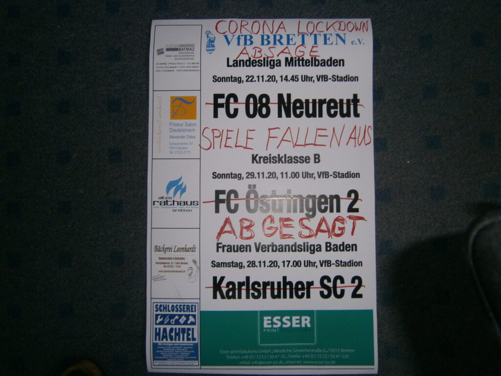 Der Corona Lockdown ist zwar nur bis 1. Dezember 20 angesetzt, aber niemand rechnet mit einer Fortsetzung des Spielbetriebs im Dezember, weil die Corona Zahlen immer noch steigen.