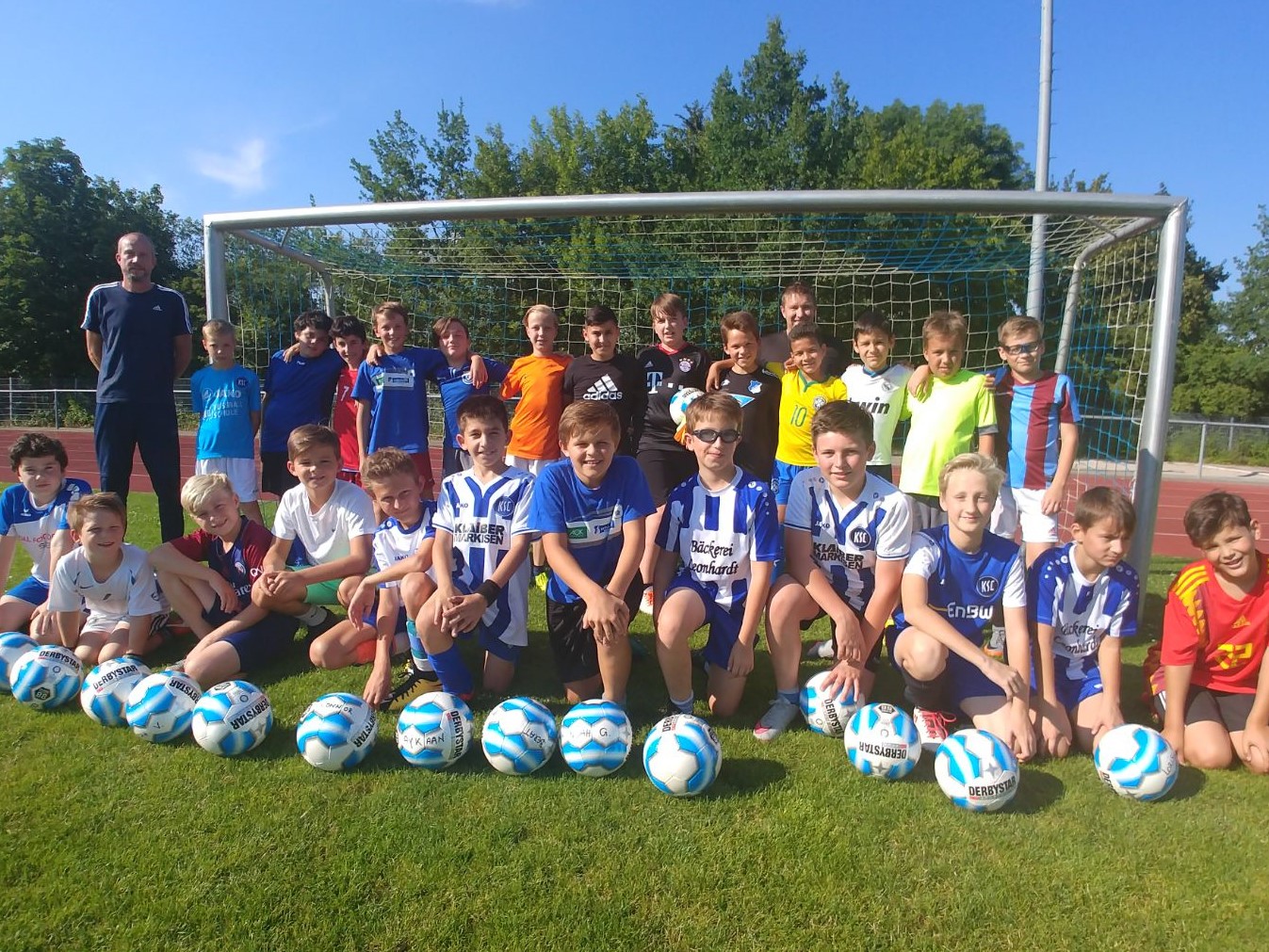 Die Jungs und die Trainer freuen sich über ihre neuen Spielgeräte