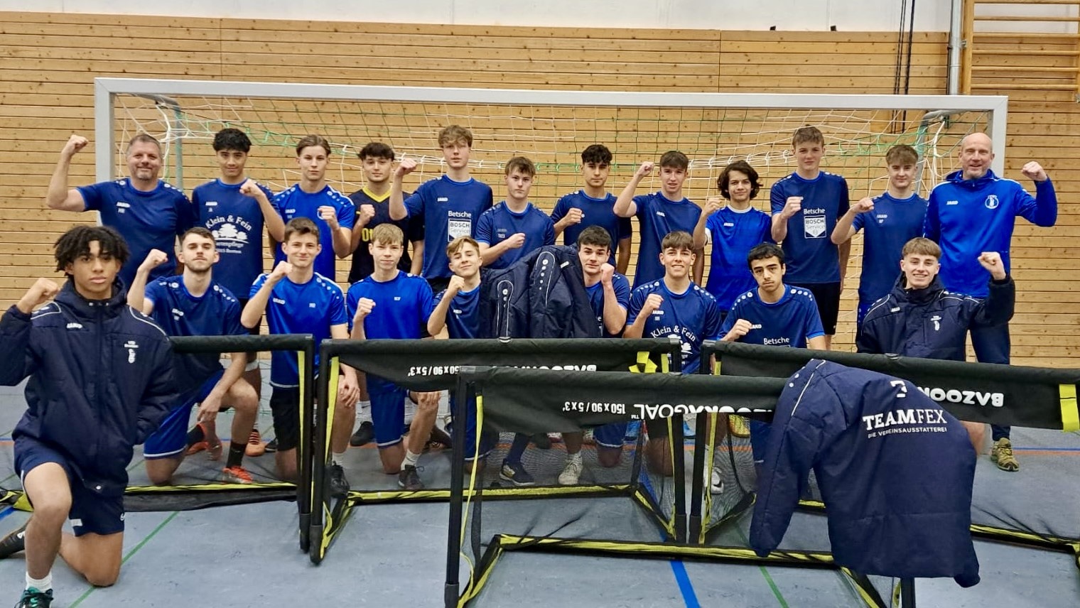 Die Jugendspieler und Trainer freuen sich über die neuen Minitore und Winterjacken