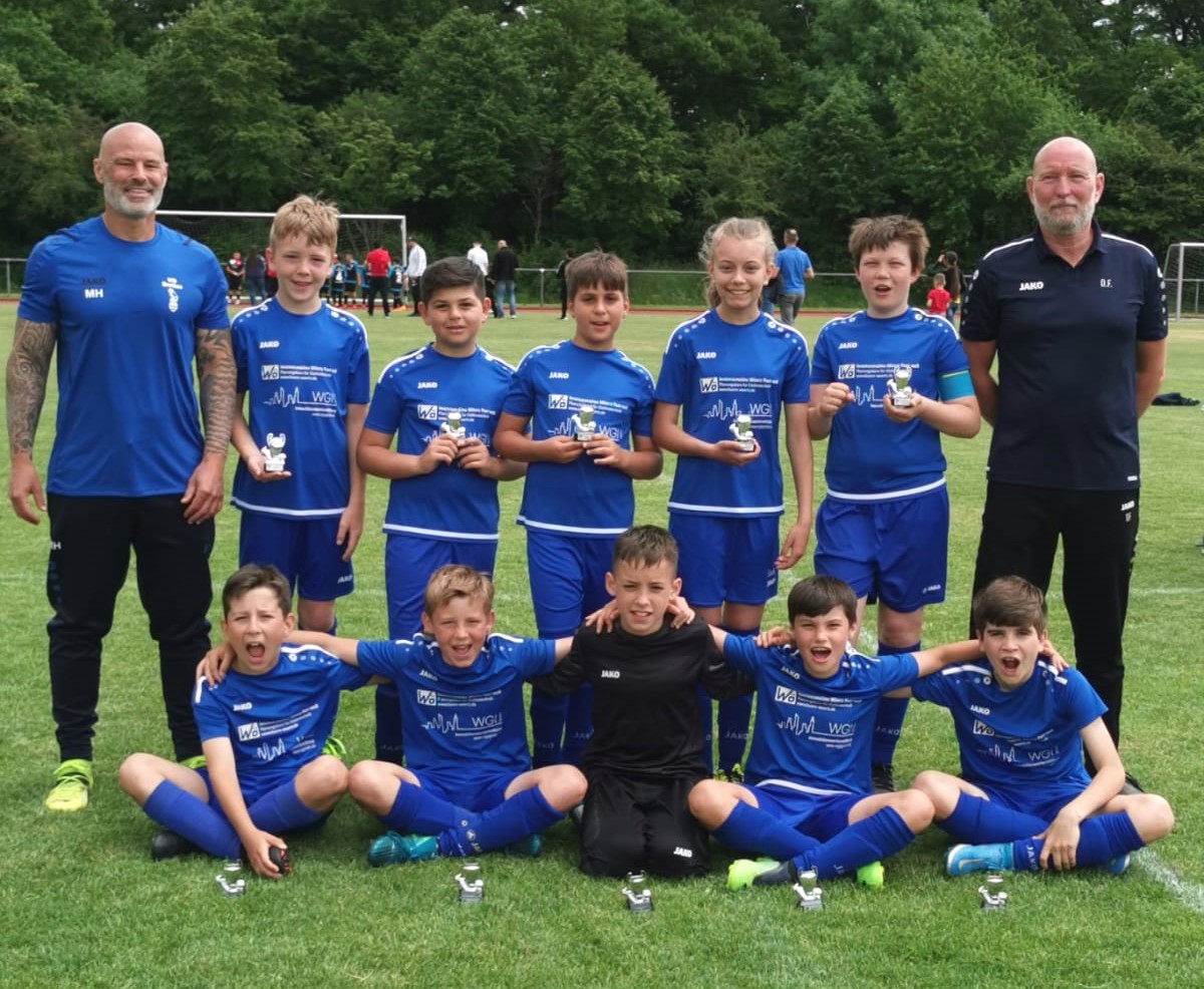 Die erfolgreiche VfB E 1 Jugend mit den Trainern Dirk Fischer (li) und Michael Härdt (re)