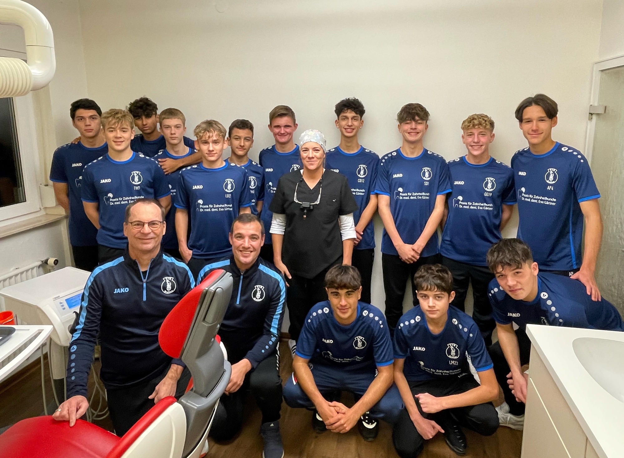 (mw) Die B2-Jugend des VfB Bretten bedankt sich für die großzügige Spende bei Frau Dr. Gärtner und der Praxis für Zahnheilkunde in Bretten. Die in der Bahnhofstrasse liegende Zahnarztpraxis unterstützt damit auch die Jugendarbeit des VfB Bretten.