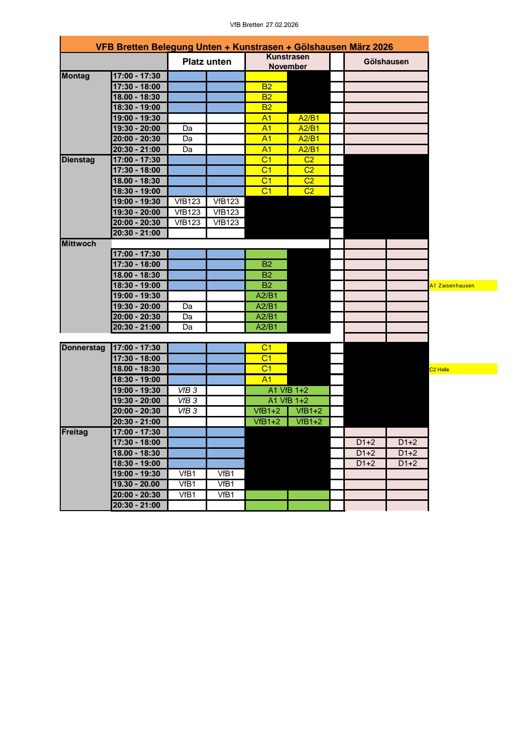 Trainingszeiten