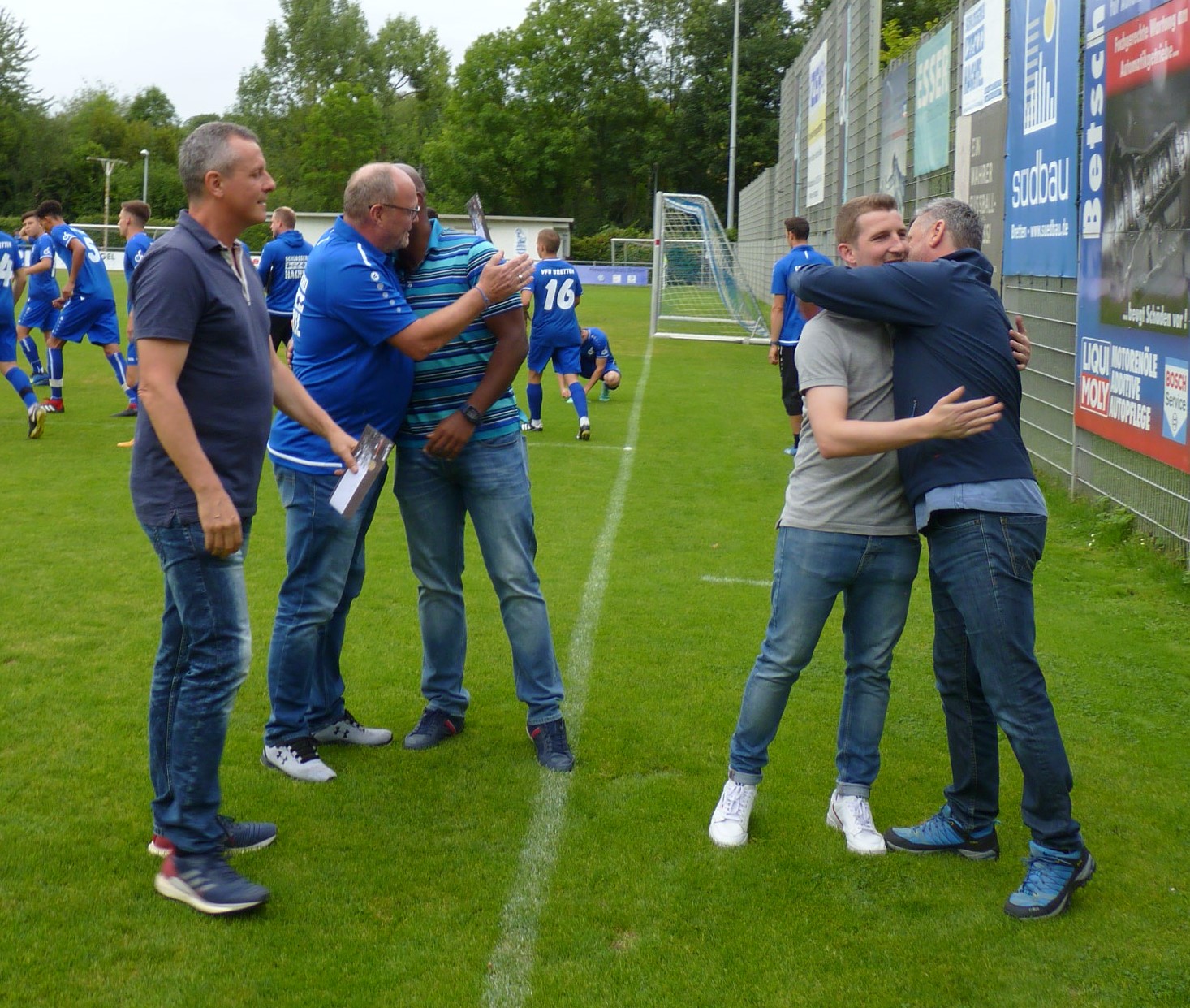 Mit herzlichen Umarmungen (alle 3G) wurden Tobias Hammes und Yannick Ngalene Ngami von der Vorstandschaft im Kreise ihrer ehemaligen Mitspieler verabschiedet.