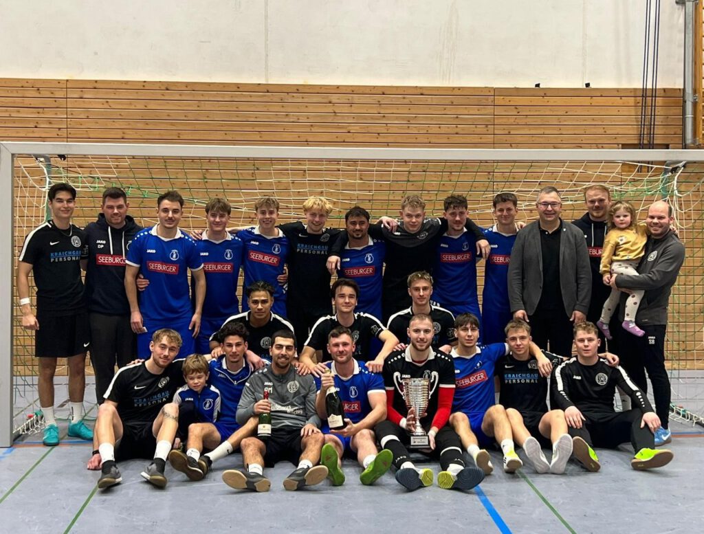 Im Endspiel traf man auf SV Kickers Büchig und beide Teams legten großen Wert auf die Abwehrarbeit, sodass es am Ende 0:0 stand und ein Neunmeterschießen erforderlich war. Hier zeigte VfB-Keeper Alex Grcic gute Paraden und hielt zwei Strafstöße, sodass VfB am Ende mit 4:3 die Oberhand behielt und von OB Nico Morast den Siegerpokal überreicht bekam.