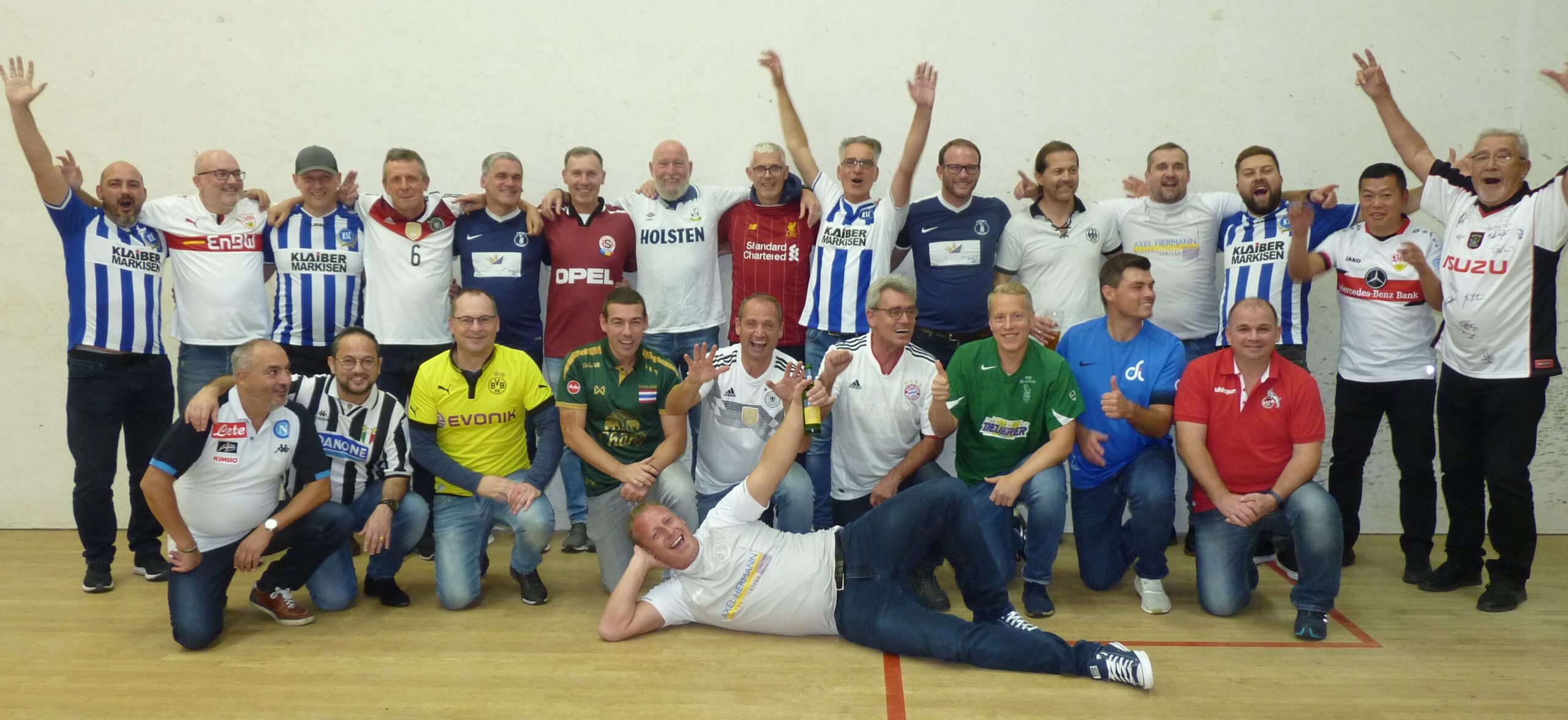 (kri) Nach zweijährig bedingter Coronapause fand wieder das traditionelle AH Kabinenfest der „Alten Herren“  in den Umkleideräumen des VfB Clubhauses statt. Die „Sause“ steigt immer nach dem letzten Trainingsabend auf dem Rasen, nachdem es dann in die Halle zum Wintertraining geht. Eine Besonderheit neben dem guten Essen und Trinken ist die Trikotpflicht, der die „Oldies“ gerne nachkommen. Viele Trikots der Deutschen Nationalmannschaft, des KSC und des VfB wurden getragen, aber auch ein Trikot von Coventry City aus der 2. Englischen Liga mit Unterschriften oder das Trikot der thailändischen Nationalmannschaft gab es zu sehen.