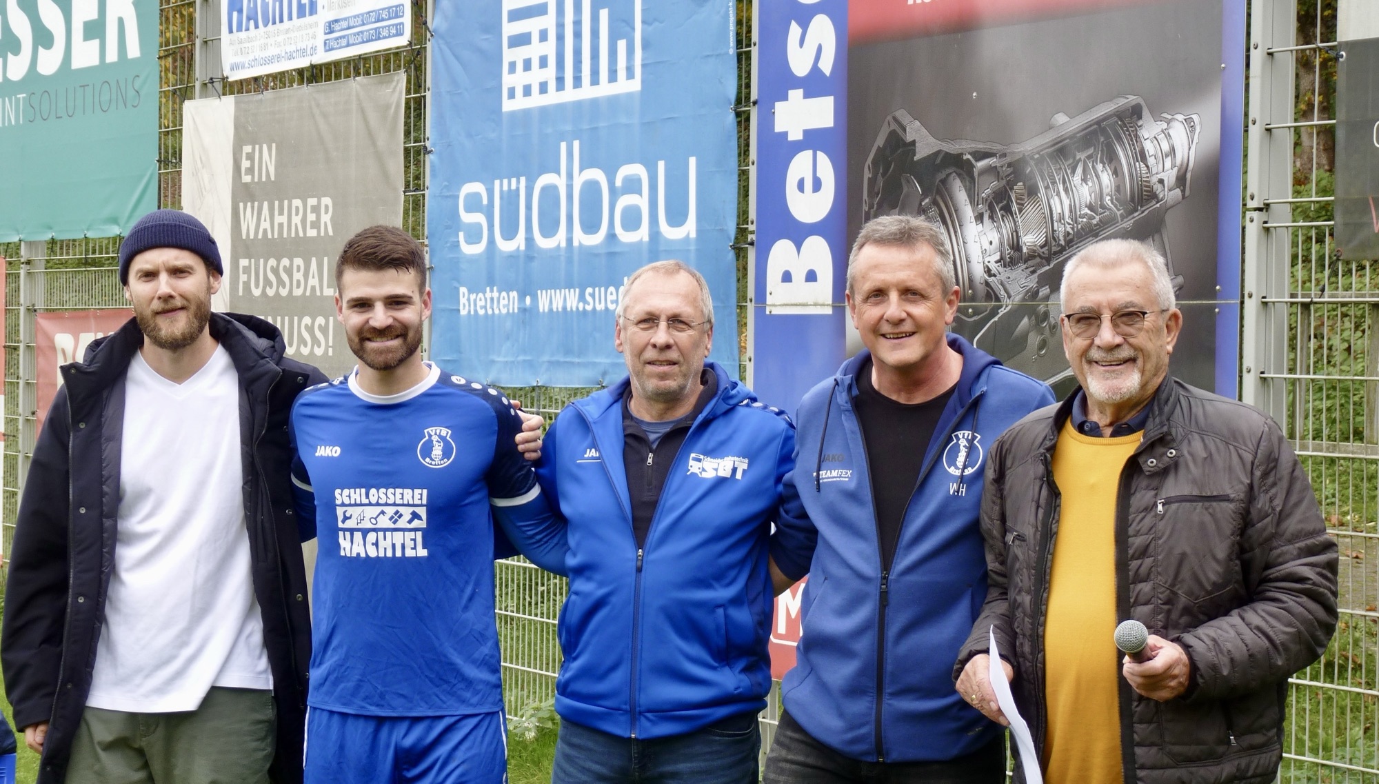 Luka Stojic wird von den sportlichen Leitern Daniel Blank, Reiner Pfannenschmid, Wolfgang Hermann und von Stadionsprecher Herbert „Herle“ Kritter verabschiedet.