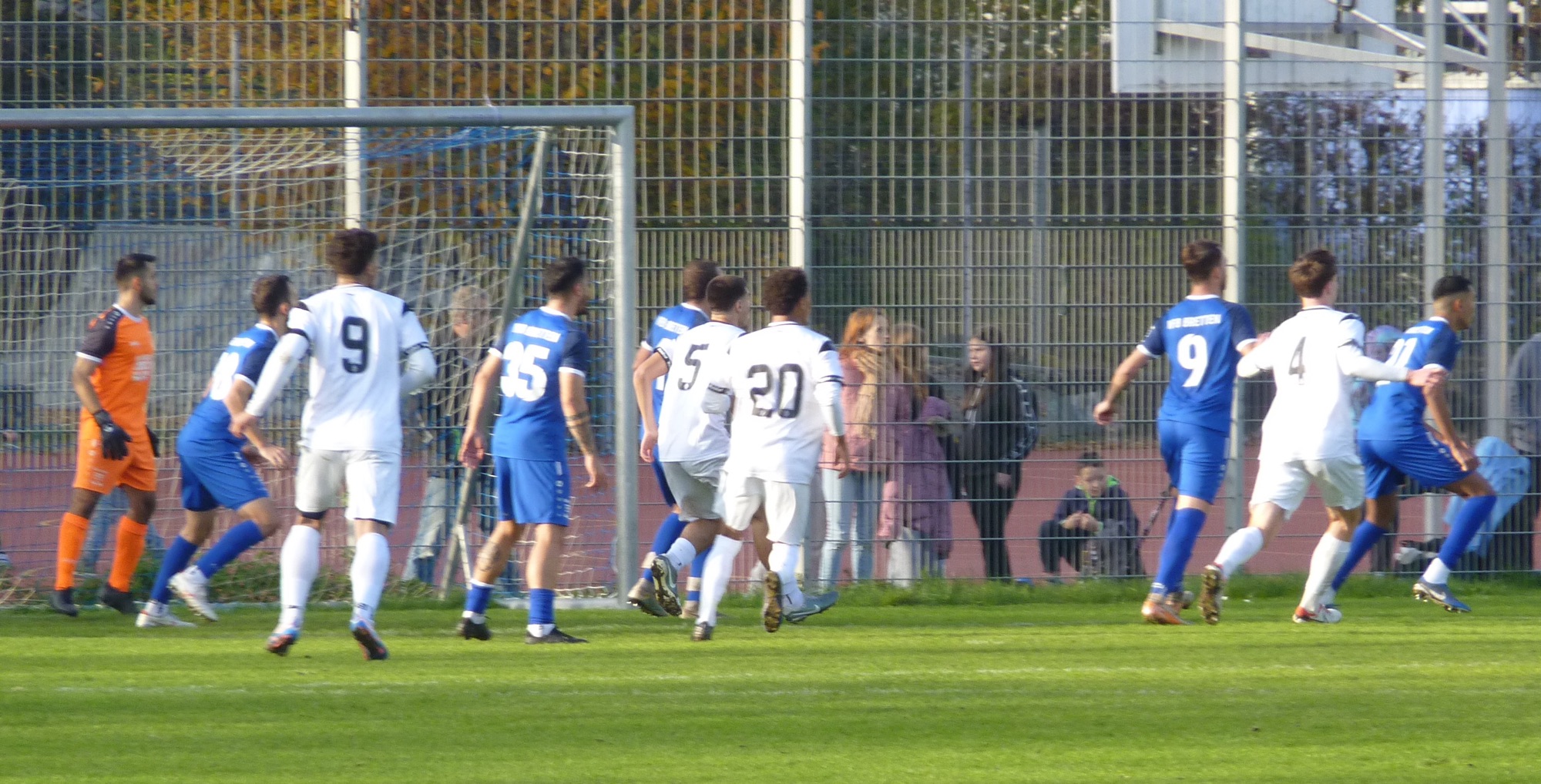Lange konnte die VfB Abwehr (blau) ihren Kasten sauber halten, doch in der Nachspielzeit kam es zur Niederlage.