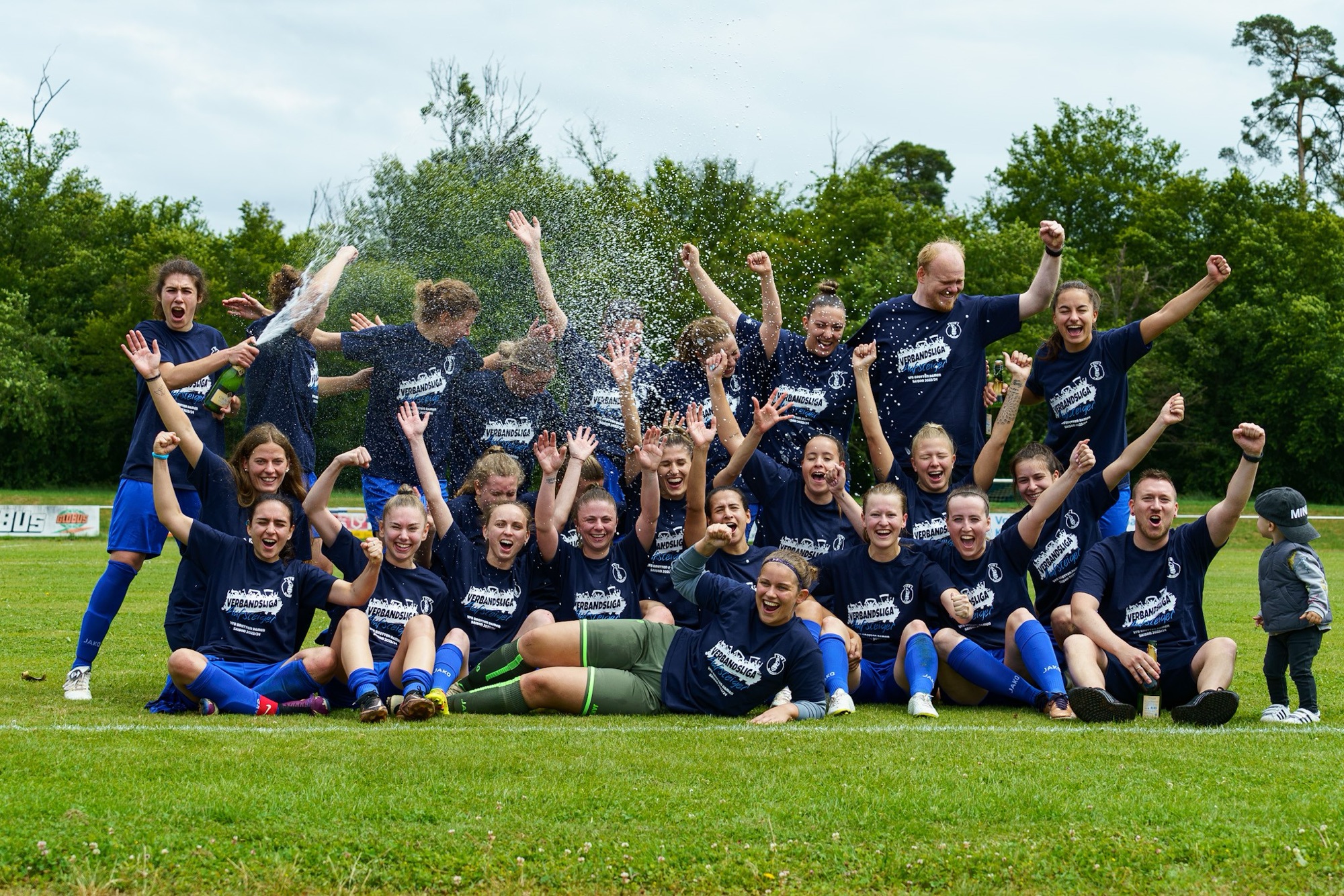 Im zeiten Durchgang wurde das gute Kombinationsspiel der Wunderlich/Reindl Schützlingen belohnt und Torjägerin Melisa Perihan Eraymaz hatte ihre großen Auftritte. In der 66. Spielminute eilte sie mit einer langen Vorlage allein auf die Gästekeeperin zu und schoss zum 2:1 ein. Endgültig war das Spiel entschieden, als die Torjägerin mit einem Schuss aus 16 Metern in den Winkel das 3:1 markierte. Das Trainerteam machte dann regen Gebrauch vom Auswechselkontingent und nach dem Schlusspfiff jubelten die Spielerinnen , Trainer und die Fans über die Rückkehr in die Verbandsliga, der höchsten Spielklasse in Baden. Trainer: Mirko Wunderlich, Fabian Reindl