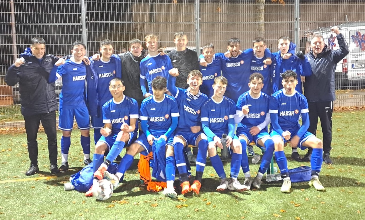 Das Trainerteam Giampiero Campo/ Michel Lubinsky hat mit dem C2 – Team, welches ausschließlich aus Jungs des jüngeren C-Jugendjahrgangs besteht, den Übergang zum Großfeld und zum 11 gegen 11 bestens gemeistert. In ihrer Qualifikationsrunde belegen sie den ersten Platz und haben sich dadurch ebenso als eine von sechs Mannschaften für die Meisterschaftsrunde um den Kreismeistertitel im Frühjahr qualifiziert.