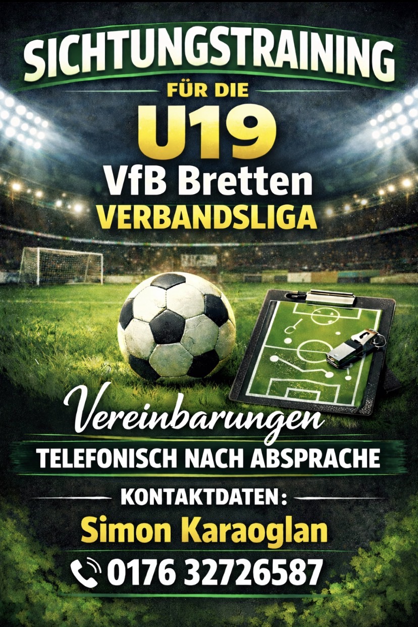Am kommenden Sonntag empfängt der VfB Bretten den SV Spielberg im heimischen Stadion Im Grüner. Die zweite Mannschaft gewann ihr Heimspiel gegen Philippsburg mit 6:0 und bleibt auf dem vierten Tabellenrang. Die Torschützen waren Maximilian Habl (2), Tom Rüßmann (2), Yven Kratz und Oktay Kufaci. Die Truppe von Tiago Alves lag gegen den TSV Dürenbüchig nach Toren von Serge Kaan und Tim Weigel mit 0:2 zurück. Leon Jourdan und Finn Masuch erzielten im zweiten Durchgang noch die Treffer zum Unentschieden.
